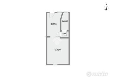 L'appartamento è composto da ingresso su cucina, camera matrimoniale, antibagno con zona lavanderia, bagno finestrato e cantina di pertinenza.