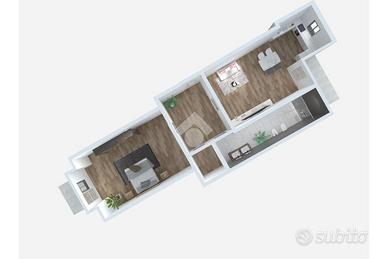 Entrando, si accede a un luminoso soggiorno che si apre su uno dei due balconi, ideale per momenti di relax all'aperto. La zona notte comprende una camera da letto accogliente e un bagno.