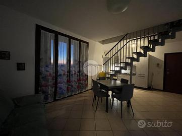 Internamente composto da Soggiorno con angolo cottura di 38 mq climatizzato con accesso al balcone, disimpegno, camera da letto matrimoniale e servizio con doccia. Attraverso una scala interna si accede alla mansarda di 43 mq con accesso alla terrazza di 12 mq.