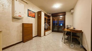 L'appartamento è composto da un luminoso soggiorno con cucina in open space che si affaccia su un balcone, camera matrimoniale e bagno con doccia.