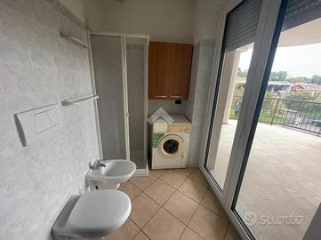 Un ampio terrazzo, accessibile sia dalla zona giorno che dal bagno, arricchisce questa soluzione, perfetto per momenti di relax all'aperto.