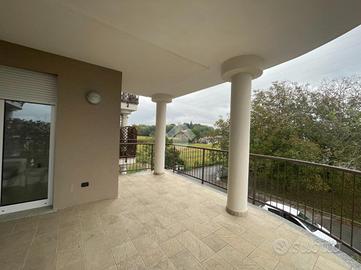 Un ampio terrazzo, accessibile sia dalla zona giorno che dal bagno, arricchisce questa soluzione, perfetto per momenti di relax all'aperto.