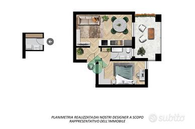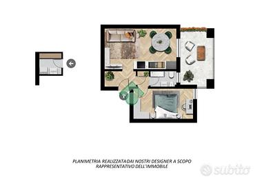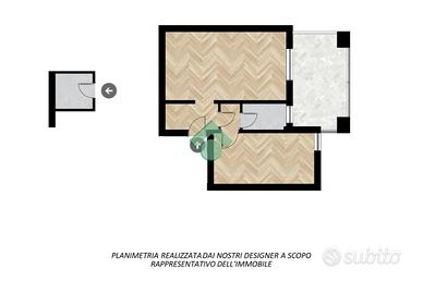 La composizione interna prevede zona giorno con cucina a vista, bagno con doccia, camera matrimoniale ed un pratico ingresso arredabile. L'immobile è inoltre dotato di cantina e posto auto assegnato.