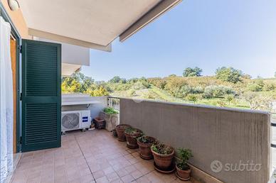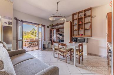 L'abitazione si apre su un soggiorno con angolo cottura, luminoso e ben distribuito, con accesso diretto al terrazzo abitabile che collega anche la camera matrimoniale.