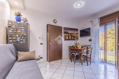 L'immobile, un bilocale di circa 45 mq, si presenta con una distribuzione pratica e funzionale: il soggiorno con angolo cottura crea un ambiente accogliente e luminoso, perfetto per vivere la quotidianità in modo confortevole. Dalla zona giorno si accede direttamente al giardino privato, uno spazio esterno versatile, ideale per trascorrere momenti di relax o ricevere amici all'aperto.