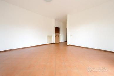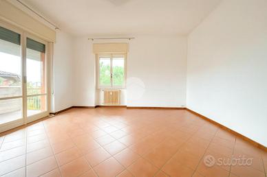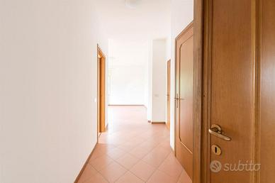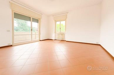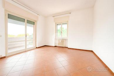 Il soggiorno, pavimentato in ceramica a quadrotti in stile cotto, vanta una splendida esposizione a Sud/Est con tanta luce naturale ed è servito da una terrazza pranzabile di 15 mq ca., con vista sul verde.