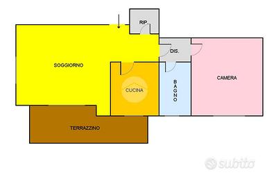 Un disimpegno fornito di capiente vano ripostiglio introduce ai vari ambienti.