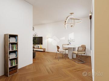 L'appartamento, attualmente in fase di ristrutturazione, offre ampi spazi ben distribuiti, e si presterà ad ospitare una coppia. Il piano è il secondo, nonchè ultimo, di un magnifico palazzo storico in fase di restauro.