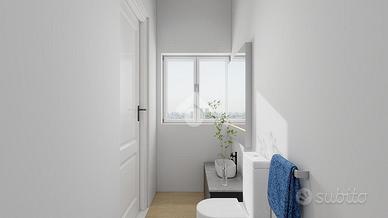 L'appartamento è dotato di doppi servizi, uno cieco a servizio della zona giorno, e un bagno principale en suite.