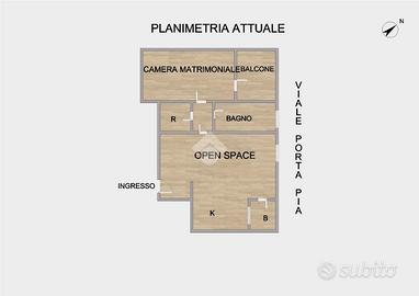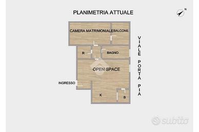 L'immobile è presentato all'ingresso da un disimpegno che divide gli ambienti, bellissimo l'openspace con angolo cottura e balcone di servizio che affaccia su viale Porta Pia.