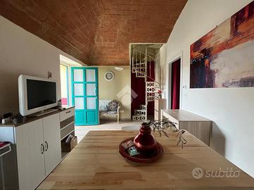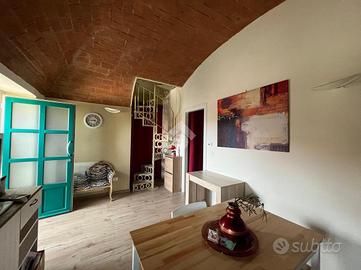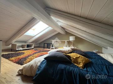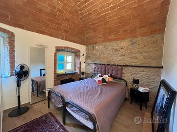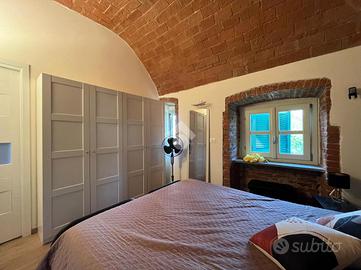 La camera matrimoniale è valorizzata da eleganti volte a vista che conferiscono charme e personalità agli ambienti.