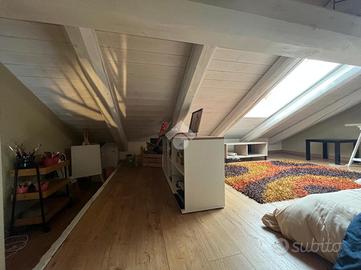 La scala a chiocciola conduce al piano mansardato, uno spazio aggiuntivo ideale da utilizzare come zona ricreativa relax o studio.