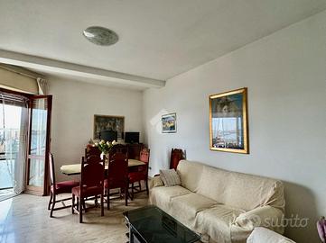 L'elemento distintivo della proprietà è certamente la lunga balconata che abbraccia l'intero perimetro dell'appartamento, offrendo uno sfogo esterno privato e una vista aperta che solo l'ultimo piano può garantire.