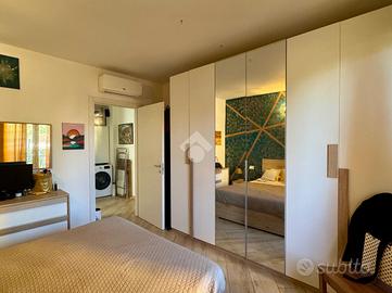 L'appartamento si apre su un luminoso soggiorno con cucina a vista, perfettamente organizzato, con accesso diretto a un piacevole terrazzino. Un ampio disimpegno conduce alla zona notte, dove troviamo un bagno finestrato con finiture moderne e una spaziosa camera da letto matrimoniale, anch'essa dotata di accesso al terrazzino. Il disimpegno offre inoltre la possibilità di realizzare una comoda zona lavanderia.