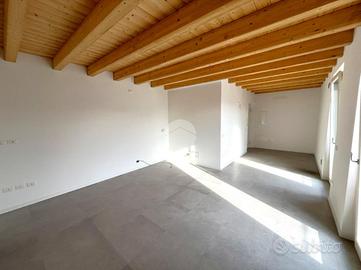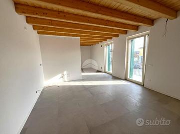 BUTTAPIETRA - In centro paese, comodo a tutti i servizi, in contesto di ricostruzione totale inserito in corte storica, splendido nuovo bilocale in classe A2, con travi a vista ed esposizione a ovest, completo di balcone nella zona giorno, camera matrimoniale e bagno finestrato con doccia. Nel disimpegno attacchi per lavatrice. Riscaldamento a pavimento, predisposizione per il climatizzatore, ascensore, cantina e ampio garage nell'interrato. Ottimo anche per investimento.