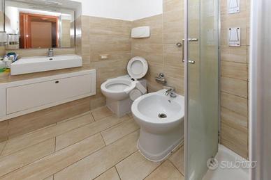 Il bagno è dotato di box doccia e la camera da letto è presenta la pompa di calore ad aria caldo/freddo.