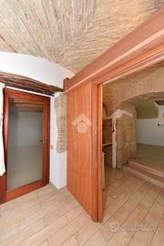 L'ingresso della palazzina è contraddistinto da una classica pavimentazione in marmo e dagli archi in pietra, caratteristici del centro storico e presenti anche all'interno dell'immobile.