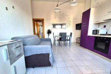 L'appartamento è composto da due locali ben distribuiti, che offrono spazi luminosi e confortevoli. All'ingresso accediamo direttamente alla cucina- soggiorno, caratterizzata da ampia parete allestita con mobile cucina, tavolo e divano-letto dove poter ricavare all'occorrenza due posti letto in più.