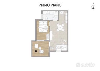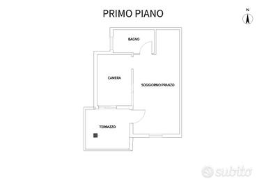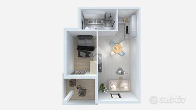 L'appartamento è composto da due locali ben distribuiti: una luminosa camera da letto, la cucina - soggiorno, luminosa e spaziosa, e un bagno ben rifinito. Un ampio terrazzo completa la proprietà, perfetto per momenti di relax all'aperto.