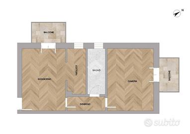 che gode di un secondo affaccio su un balcone ed un bagno finestrato con box doccia.