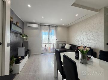 In zona residenziale a Calusco d'Adda proponiamo in vendita un elegante bilocale di 60 mq, recentemente ristrutturato, caratterizzato da uno stile moderno e ambienti luminosi e ben organizzati. L'appartamento si apre su una spaziosa zona giorno con cucina a vista in open space, resa accogliente grazie all'ottima esposizione e alla luce naturale. Un disimpegno ci conduce alla zona notte, composta da una confortevole camera da letto matrimoniale e da un bagno finestrato dotato di ampia doccia. Punto di forza dell'immobile è il grande terrrazzo, ideale per momenti di relax all'apero e perfetto per pranzi e cene in compagnia. Completano la proprietà un curato giardino condominiale, che aggiunge ulteriore valore all'immobile, il box da 22 mq e la cantina al piano interrato. Soluzione idelale per chi cherca comfort, privacy e uno stile moderno in un contesto tranquillo con spazi esterni vivibili.