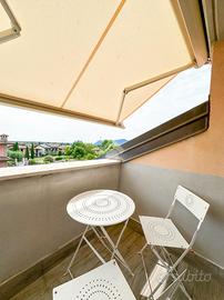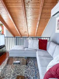 Bilocale con soppalco e travi a vista in zona centrale In posizione strategica, a pochi passi da tutti i servizi principali come banca e farmacia, proponiamo in vendita elegante bilocale con soppalco, in ottime condizioni e caratterizzato da suggestive travi a vista. L'immobile, situato al primo piano di un complesso residenziale di sole 10 unità, si apre su un luminoso soggiorno con zona cottura mentre la zona notte è composta da camera matrimoniale e bagno finestrato. Al piano superiore troviamo una spaziosa zona relax, una cabina armadio, un secondo bagno, ripostiglio e delizioso terrazzino con vista sulle colline moreniche. A disposizione un comodo garage doppio nell'interrato. EN. One-Bedroom Loft Apartment with Exposed Beams in a Central Location In a prime location, just a short walk from all essential amenities such as banks and pharmacies, we are delighted to present for sale this stylish one-bedroom loft apartment in excellent condition, featuring charming exposed wooden beams. Situated on the first floor of a residential complex with only 10 units, the property opens onto a bright living room with an open-plan kitchen, while the sleeping area consists of a master bedroom and a windowed bathroom. The upper level offers a spacious relaxation area, a walk-in wardrobe, a second bathroom, a storage room, and a delightful terrace with views of the Morainic Hills. A convenient double garage in the basement completes the property. DE. 2-Zimmer-Maisonettewohnung mit sichtbaren Holzbalken in zentraler Lage In bester Lage, nur wenige Schritte von allen wichtigen Annehmlichkeiten wie Bank und Apotheke entfernt, präsentieren wir zum Verkauf diese stilvolle 2-Zimmer-Maisonettewohnung in ausgezeichnetem Zustand, geprägt von charmanten sichtbaren Holzbalken. Die Wohnung befindet sich im ersten Stock einer Wohnanlage mit nur 10 Einheiten und öffnet sich zu einem hellen Wohnbereich mit offener Küche. Der Schlafbereich besteht aus einem Schlafzimmer mit Doppelbett un