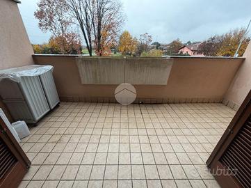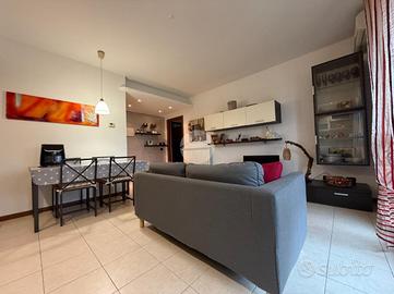 In piccola palazzina di poche unità abitative, situata in tranquilla zona residenziale, proponiamo luminoso appartamento posto al primo e ultimo piano. La soluzione è composta da un'accogliente zona giorno con soggiorno e cucina a vista, dalla quale si accede a un comodo terrazzino coperto, perfetto per momenti di relax all'aperto o per pranzare all'esterno. Un pratico disimpegno conduce alla spaziosa camera matrimoniale e al bagno finestrato di generose dimensioni, dotato di vasca. L'appartamento si presenta in ottime condizioni interne: pavimentazione in ceramica chiara in tutti gli ambienti, tenda da sole, zanzariere, aria condizionata, videocitofono e abbassamenti in cartongesso nella zona giorno che donano un tocco moderno e accogliente. La doppia esposizione est/ovest garantisce luce naturale durante tutto l'arco della giornata. Completano la proprietà cantina e box, entrambi inclusi nel prezzo. Una soluzione ideale per chi cerca tranquillità, comfort e qualità in un contesto riservato.