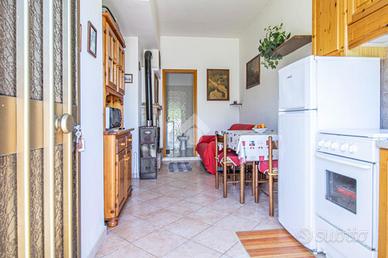 Realizzato negli anni 60, ristrutturato negli anni 90, presenta pavimenti in gres, infissi in legno doppio vetro con persiane e porte in legno. Sprovvisto di impianto termico, l' appartamento viene riscaldato da stufa in legno, camino e un termoconvettore nella camera da letto.