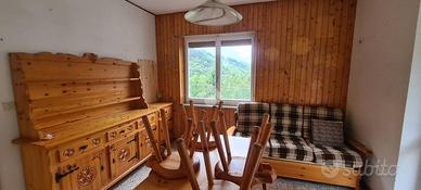 CANTOIRA - Boschietto: questo bilocale si trova al secondo piano di un condominio affacciato sulla montagna di Santa Cristina. Dalla porta di ingresso si accede ad un piccolo disimpegno dove affacciano tutte le stanze. La zona giorno si compone di un angolo cottura separato dalla sala da un divisorio in legno. La zona notte è composta da una grande camera da letto e un bagno con vasca. Sia la sala sia la camera da letto hanno doppia aria e l'appartamento gode di due balconi con affaccio sulla strada e sulla montagna.