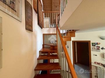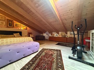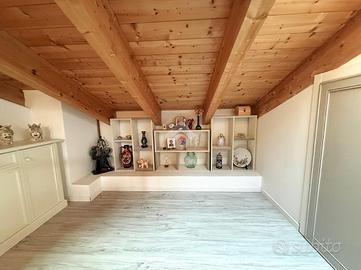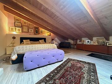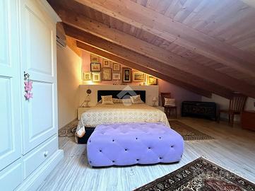 Attraverso una comoda scala interna si accede al piano mansardato, rifinito con travi a vista, attualmente utilizzato come seconda zona notte, dispone, in oltre, di un elegante servizio con vasca freestanding.