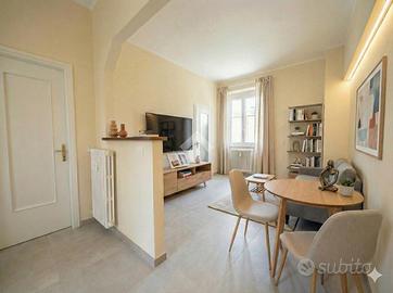 L'ingresso conduce alla zona giorno, composta da un soggiorno con affaccio diretto sul balcone privato ed un cucinotto separato. La zona notte offre una camera matrimoniale dalle metrature generose, tipiche delle costruzioni di una volta, il bagno finestrato è dotato di doccia, ed è presente infine un comodo ripostiglio, fondamentale per l'organizzazione della casa.