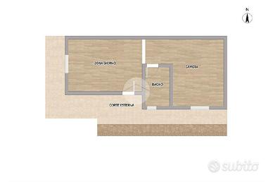 L'appartamento si trova all'interno di una palazzina di recente costruzione, è posto al piano terra ed è caratterizzato da un gradevole cortile esterno interamente pavimentato.