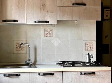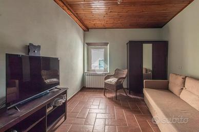 Situato al primo piano, l'immobile si compone di un luminoso soggiorno con angolo cottura e caratteristico camino. Completa la proprietà una camera da letto, attualmente adibita a studio, e un bagno finestrato con doccia.