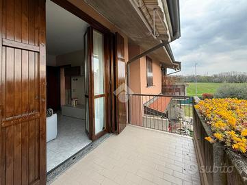 COSE DA SAPERE SULLA CASA 2 Locali - Piano Primo - Box - Giardino Condominiale - Riscaldamento Autonomo - Terrazzo PARTICOLARITA' E DESCRIZIONE Trattasi di ampio appartamento bilocale con riscaldamento autonomo posto al piano primo in contesto condominiale Accediamo alla soluzione tramite scala comune e sulla sinistra si sviluppa il soggiorno con cucina a vista, dotato di porta finestra che conduce al terrazzo vivibile il quale affaccia sul giardino condominiale. Proseguendo tramite il disimpegno accediamo alla zona notte, composta dal bagno di servizio e camera da letto matrimoniale. A completare la soluzione, incluso nel prezzo, è presente un box singolo. UBICAZIONE E CONTESTO L'immobile è situato a pochi minuti dal centro di Capriate San Gervasio e da tutti i principali servizi che il comune offre. Capriate San Gervasio è dotato di tutti i principali servizi: scuole, mezzi pubblici, campo sportivo, farmacia, supermercato e varie attività commerciali a pochi minuti dal centro commerciale il Globo.