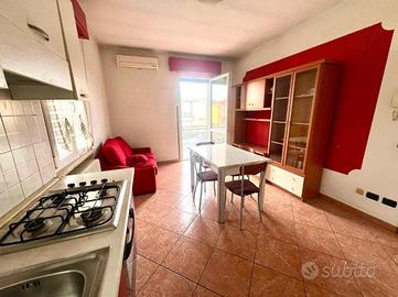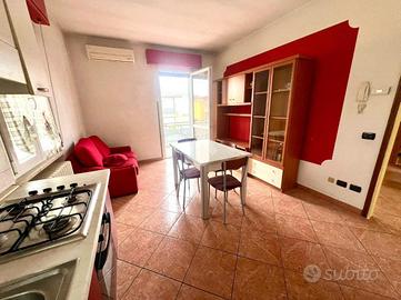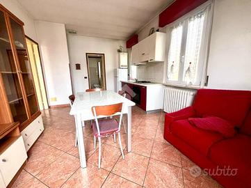 CARAVAGGIO: L'appartamento è un accogliente bilocale situato al primo piano. Entrando, si viene accolti da una zona giorno organizzata in un ampio open space che integra il soggiorno con la cucina a vista, creando uno spazio conviviale perfetto per momenti di relax o per ospitare amici e familiari. Proseguendo, un pratico disimpegno conduce alla zona notte. Qui troviamo un bagno finestrato dotato di vasca e una camera da letto matrimoniale, pensata per offrire tranquillità. L'appartamento è stato ristrutturato nel 2008 ed è inoltre dotato di infissi in PVC con doppio vetro ed aria condizionata. Completano la proprietà un comodo box auto al piano terra, perfetto per parcheggiare in totale sicurezza ed una cantina al piano interrato. Gli spazi ben organizzati rendono l'abitazione una soluzione ideale sia per giovani coppie sia per chi desidera un ambiente moderno e funzionale.
