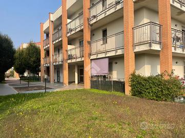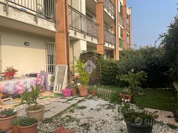 L'appartamento è inserito in un contesto residenziale di recente costruzione a breve distanza dalle scuole. Posizionato al piano terra prevede zona giorno dal taglio regolare che forma un unico ambiente con cottura e living. La zona notte è composta dalla camera matrimoniale servita da cabina armadio e dal bagno completo di vasca, sanitari ed attacco per lavatrice. Valore aggiunto alla soluzione è dato dal giardino di proprietà ben esposto al sole dotato di barbecue. Termoautonoma con caldaia esterna, la soluzione si presenta in buono stato. Comprensiva di aria condizionata, videocitofono, balcone e cantina raggiungibile anche da ascensore.