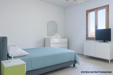 La zona notte, separata da un corridoio, comprende una spaziosa camera matrimoniale e un bagno finestrato con doccia.