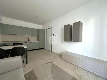 COSA SAPERE SULLA CASA: BILOCALE AL PIANO PRIMO-ARREDATO-SOGGIORNO/CUCINA-BAGNO FINESTRATO-CAMERA DA LETTO MATRIMONIALE-BOX AUTO-ASCENSORE DESCRIZIONE E PARTICOLARITA': All'interno di una palazzina di recente costruzione proponiamo in vendita appartamento bilocale al piano primo servito da ascensore, ideale per chi cerca comfort e modernità. L'appartamento si sviluppa con soggiorno/cucina integrati in un unico ambiente open space con accesso diretto al balcone tramite ampia vetrata, una camera da letto matrimoniale con accesso al secondo balcone mediante porta finestra ed un bagno finestrato con sanitari e doccia. A completare la soluzione box auto privato. L'appartamento è dotato di pompa di calore per riscaldamento e raffrescamento a pavimento, impianto di ricircolo aria, l'impianto per la ventilazione meccanica controllata, impianto fotovoltaico di 2 kw, portoncino blindato e serramenti con triplo vetro, zanzariere e cappotto di 16 cm. Tutte le soluzioni hanno una zona comune con ulteriori posti auto e la zona delle palazzine è delimitata da recinzione e cancelli per un'ulteriore privacy e sicurezza. Ad ogni soluzione venduta sarò consegnata all'atto notarile la certificazione ASACERT con il rilascio della polizza decennale postuma, a garanzia di una qualità impeccabile e sicura nel tempo. Si specifica che il prezzo è comprensivo dell'arredo.
