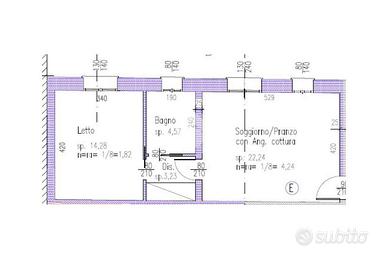 Soggiorno, angolo cottura, disimpegno, camera matrimoniale, bagno e cantina.