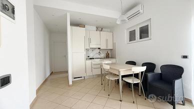 L'immobile, in buono stato interno, offre una disposizione funzionale dei due locali con gli spazi ottimamente sfruttati. L'ingresso è nella zona giorno con angolo cottura con uscita sulla terrazza pranzabile dalla quale si gode una piacevole vista mare. Tramite un disimpegno si accede alla camera da letto matrimoniale ed al bagno finestrato dotato di box doccia e sanitari sospesi.