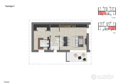 Le soluzioni prevedono appartamenti di due, tre o più locali, con giardino posti al piano terra o muniti di balcone dal primo al quinto piano.