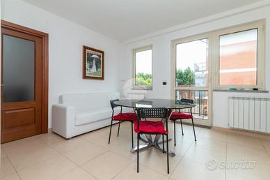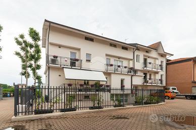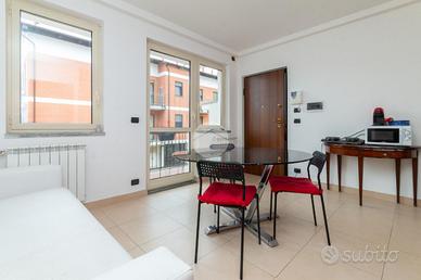L'appartamento si trova al primo piano in un contesto di tre unità abitative, sorge in zona tranquilla e poco trafficata. Entrando dalla porta d'ingresso si accede alla zona giorno che è in grado di contenere la parete attrezzata per la cottura, un tavolo con quattro sedie, oltre ad un divano ed un mobile per la tv. Da qui è possibile accedere al balcone che affaccia sul cortile e dove è possibile sostare nelle calde giornate estive. Il disimpegno separa la zona giorno dalla zona notte che contiene una camera da letto matrimoniale molto luminosa. Il Bagno è fornito di doccia e di vasca. Il riscaldamento è autonomo, il che consente di avere spese di gestione non troppo elevate. L'immobile è stato rivisto nelle parti comune nel 2023.Completa la proprietà un box auto di pertinenza dell'alloggio. L'immobile sarà libero da Febbraio 2026.