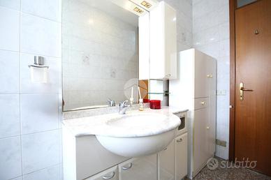 Il disimpegno, dotato di angolo lavanderia, conduce alla camera matrimoniale e al bagno con box doccia.