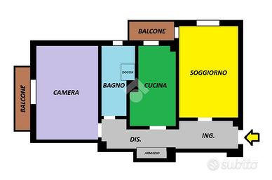 L'appartamento si colloca al piano primo intermedio e beneficia di una doppia esposizione angolare Sud-Est. L'affaccio dai due balconcini con vista meravigliosa sul Castello rappresenta un pregio di rara bellezza e dona alla casa una particolare caratteristica impossibile da trovare in abitazioni affini.