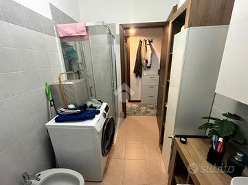 All'interno si suddivide in ampio ingresso che accede direttamente al corridoio, da questi si raggiungono la camera matrimoniale, il servizio, con box doccia e lavanderia, e la zona giorno open space con angolo cottura e balcone.
