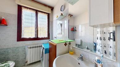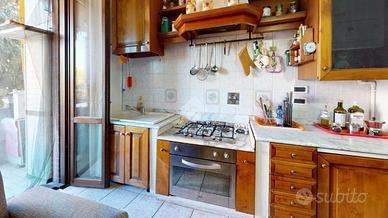 L'appartamento dispone di riscaldamento autonomo con caldaia a condensazione del 2022, aria condizionata, infissi in legno con doppi vetri e zanzariere, porta blindata, tendone parasole e tenda frangivento. Completano la proprietà una cantina al piano terra e un contesto condominiale curato.