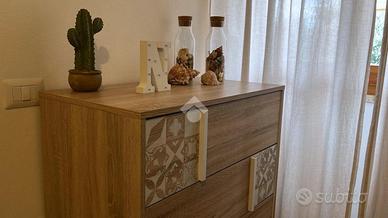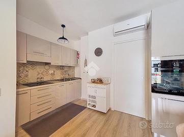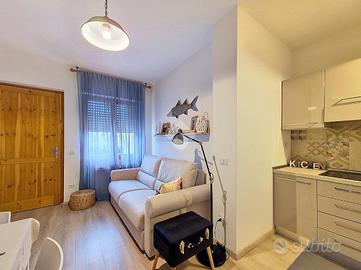 L'appartamento si apre su un soggiorno accogliente con angolo cottura, arredato con gusto e dotato di finiture moderne. La zona notte è composta da una camera matrimoniale perfetta per godersi il riposo dopo una giornata al mare, e un bagno elegante e funzionale.