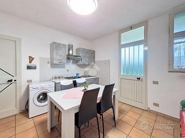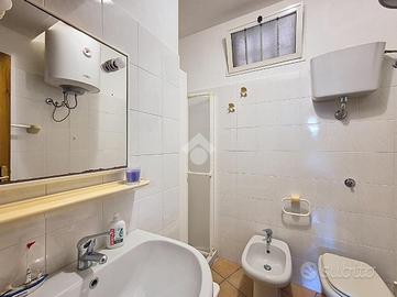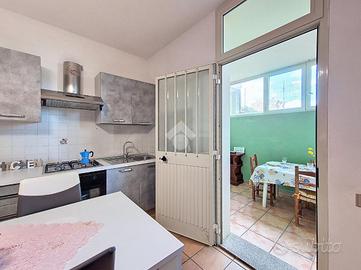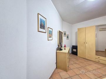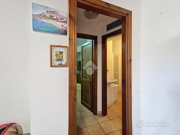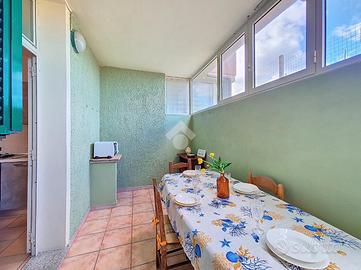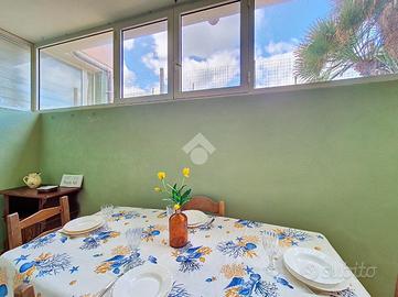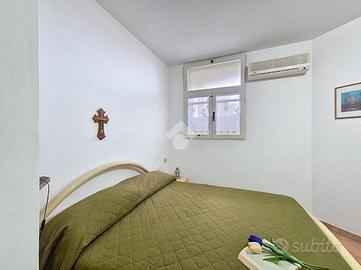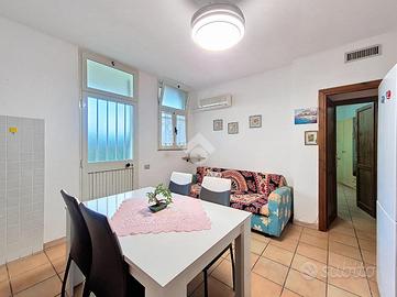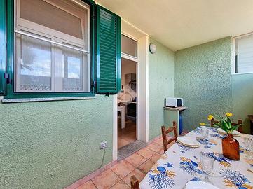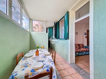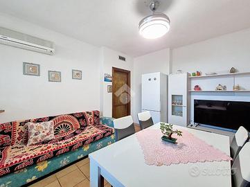 All'ingresso ci accoglie una zona giorno con angolo cottura, raccolta e funzionale, ideale per i momenti di condivisione dopo una giornata al mare. Un disimpegno conduce alla camera matrimoniale, silenziosa e riparata, e al bagno, ben organizzato.