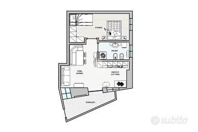 VENDUTO - - - - - - - - - - - - CAVEDAGO - Via Zeni - Bilocale di 50 mq In palazzina di recente ristrutturazione, piano terra con ingresso indipendente, composto da: zona giorno con cucina a vista, stanza, bagno finestrato e terrazzino. Completo di posto auto esterno e cantina. Riscaldamento termoautonomo a gas GPL. Zona giorno servita da canna fumaria per stufa. Posizione centrale, comoda a tutti i servizi, poche spese condominiali.