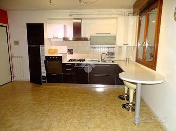 Si entra nella zona giorno: open space, cucina essenziale ma ben attrezzata, il tavolo vicino alla finestra.